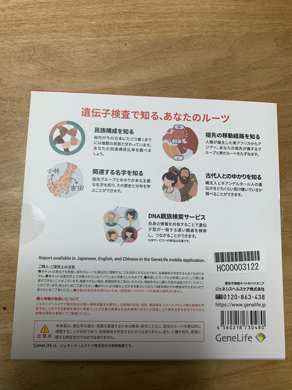 ジェネシスヘルスケア株式会社の遺伝子検査キット「GeneLife(Haplo3.0)」