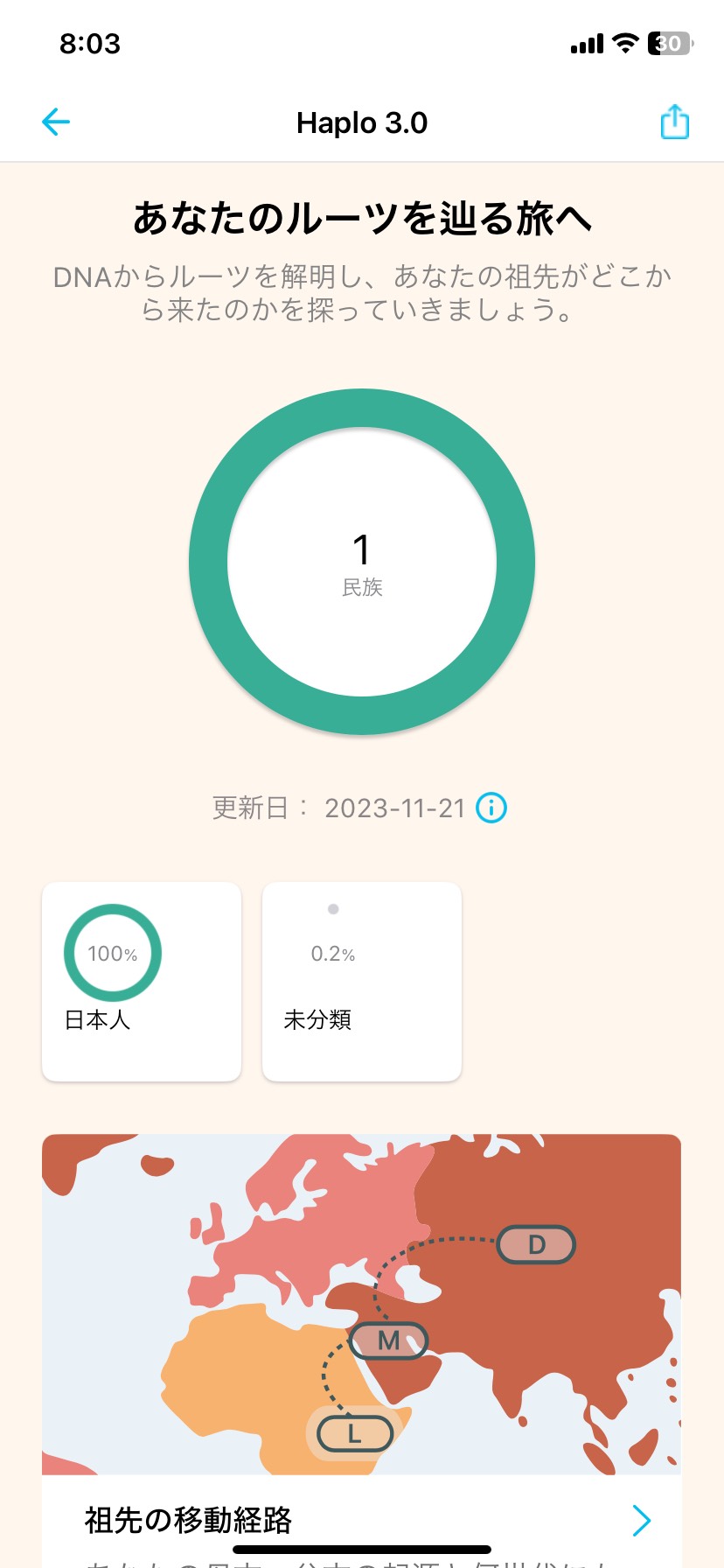 わたしたちの先祖が今の日本にたどり着くまでに複数の民族と交わっています。自分の民族構成比率を知ることが出来ます。