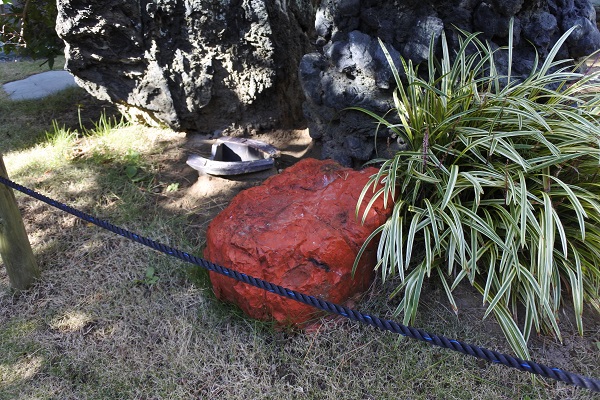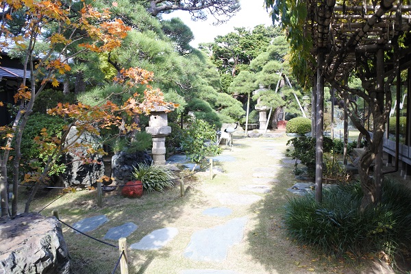 賓客をもてなす社交空間としての要素が強い庭園。手前の左側に見えるのは、佐渡から取り寄せたという「赤玉石」です。