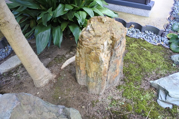 これが赤玉石(左)。木石(珪化木・けいかもく)樹木の化石(右)